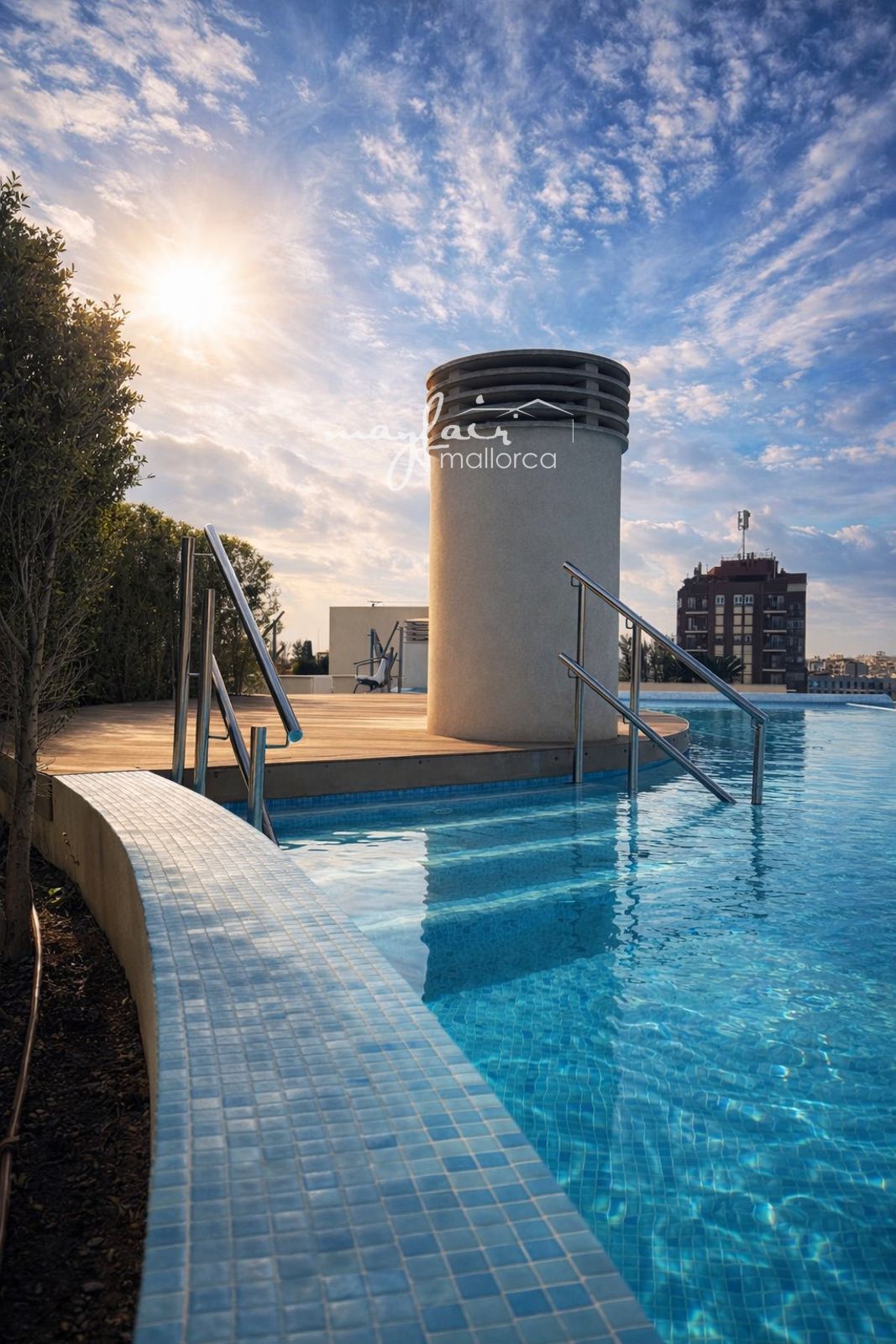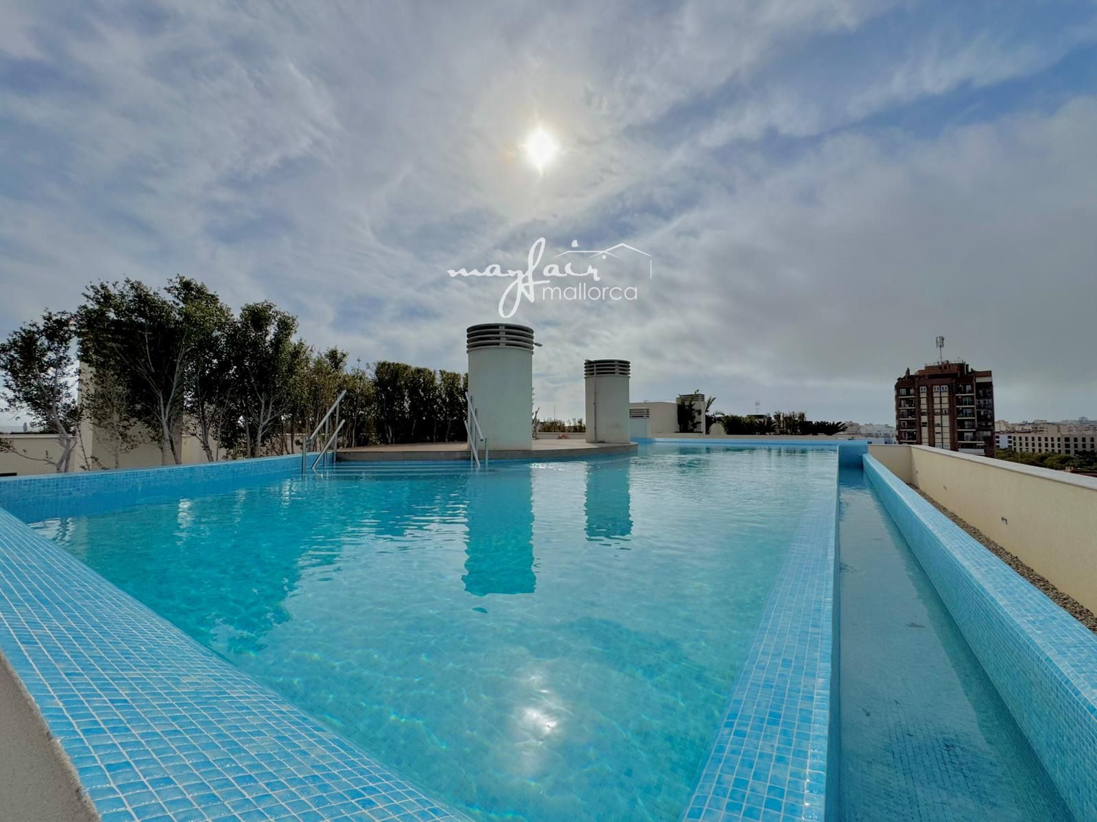 Piscina en la azotea con vistas a la Sierra de Tramuntana